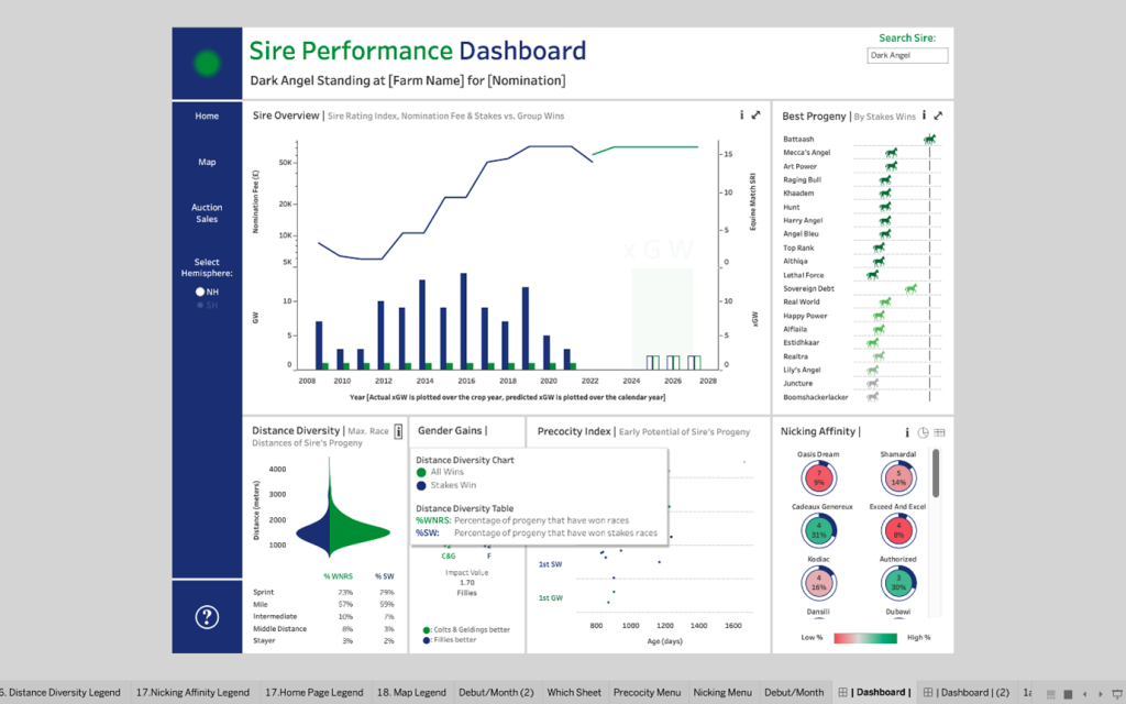 With over 20+ years of historical racing and bloodstock data collected by co-founder Spencer Chapman and advanced machine learning at its core, the Sire Performance Dashboard is a game-changer in providing the most current racing and breeding insights.